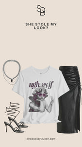 Meet your new go-to mood tee. The As If T-Shirt is for anyone who knows their worth and isn’t afraid to show it. A playful nod to ‘90s sass meets modern streetwear edge — perfect for brunch plans, errands, or dressing up with leather and heels. Effortless, witty, and unapologetically confident.