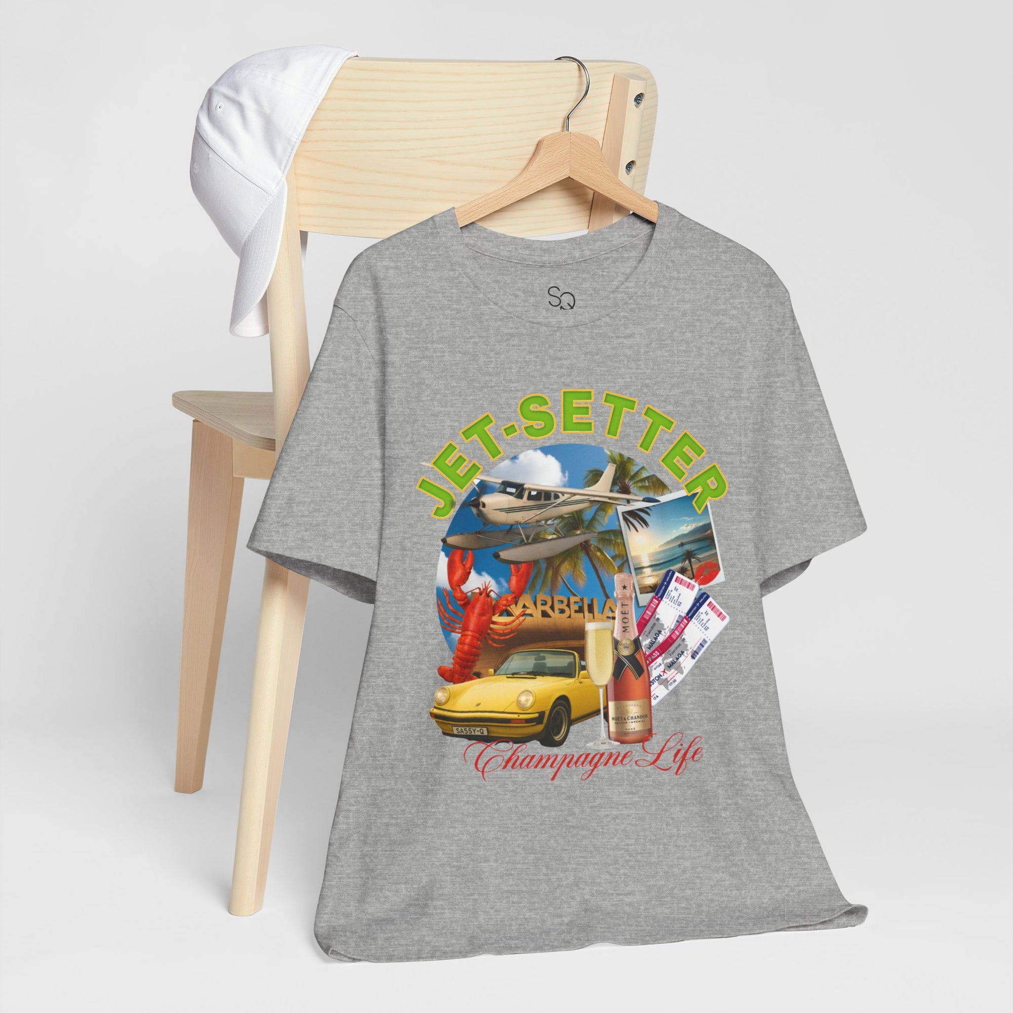 Introducing the perfect Unisex Jersey Short Sleeve Tee for those who aspire to live the high life! This shirt embodies a vibrant jet-setting vibe, making it ideal for travel enthusiasts and adventurers. With its breezy fabric and stylish design, you’ll feel confident and comfortable whether you’re jetting off to your next destination or lounging at home. Its versatile style fits seamlessly into casual and semi-formal occasions, making it an excellent choice for parties, summer vacations, or just enjoying a sunny day out. Celebrate life's moments with this tee during holidays, birthdays, or as a thoughtful gift for the wanderlust-filled friends in your life.